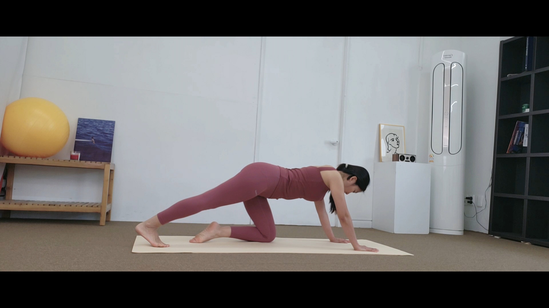 ㄷ자몸 그대로 한 다리 뒤로 보내 발가락 매트로 찍어내고. 뒤꿈치 밀어내면서 종아리 늘려봅니다. 휴. 너무 시원한 느낌. 지금 산모님들 종아리와 발에 쥐 잘나잖아요. 순환을 도와서 뭉치는 것 방지합니다.